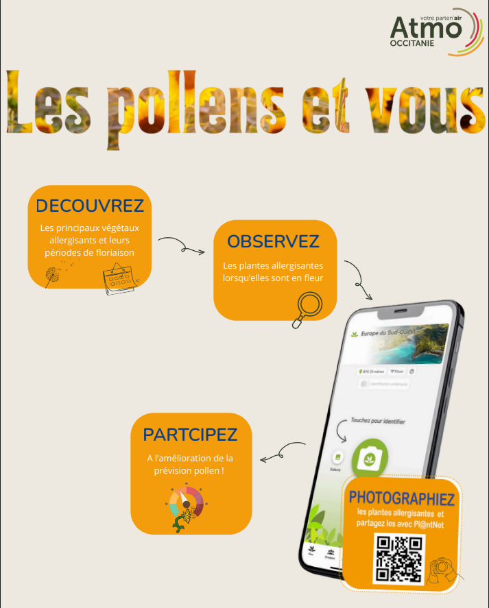 Une fois que cette flore n'aura plus de secret pour vous, n'oubliez pas notre Observatoire des floraisons ! Repérez une de ces espèces en fleurs, prenez-la en photo et transmettez vos observations sur Pl@ntnet : vos contributions nous permettent de mieux suivre la progression des pollens dans la région et de continuer à vous informer.